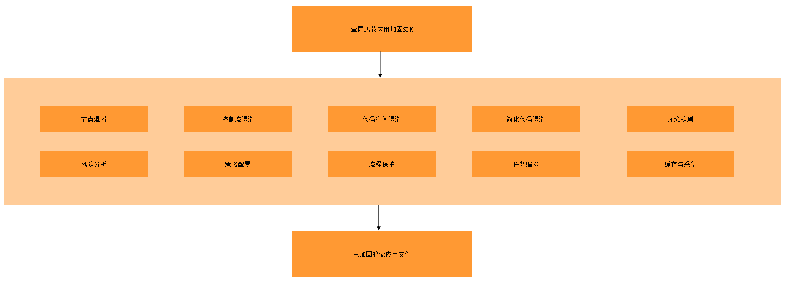 蛮犀鸿蒙应用加固 SDK 面向 HarmonyOS 应用交付场景,提供可拆分、可封装、可扩展的应用保护框架。当前产品重点覆盖源码处理能力骨架、设备环境风险识别、任务化编排、保护决策与报告输出。