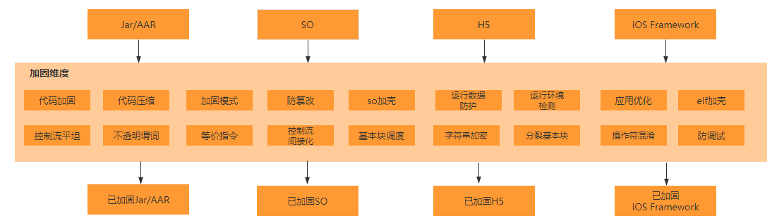 | Native深度加固 | 对App 程序中的Native库进行自定义Linker加固,结合动态反调试技术,增强了被Dump和被调试的难度。 |